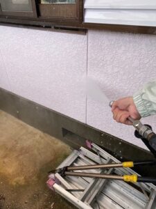 塗装工事では「下地処理」がとても大切で、その第一歩が高圧洗浄(水洗い)です。